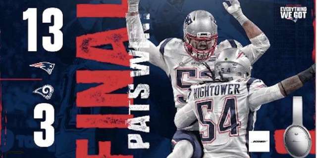 Un tweet de la cuenta de Twitter de los Patriots intentó convertir el juego deliberativo y de bajo puntaje en un punto a favor, aludiendo a la vieja sabiduría de que "la defensa gana los campeonatos". Eso es difícil de discutir. La ofensiva de los Patriots estuvo dormida al volante durante gran parte de la primera mitad del juego, y los comentaristas de CBS atribuyeron parte de su victoria al hecho de que al final de la noche, la defensa de los Rams había estado en el campo tanto que era solo su rendimiento natural comenzaría a degradarse a medida que se cansaban y dolían.