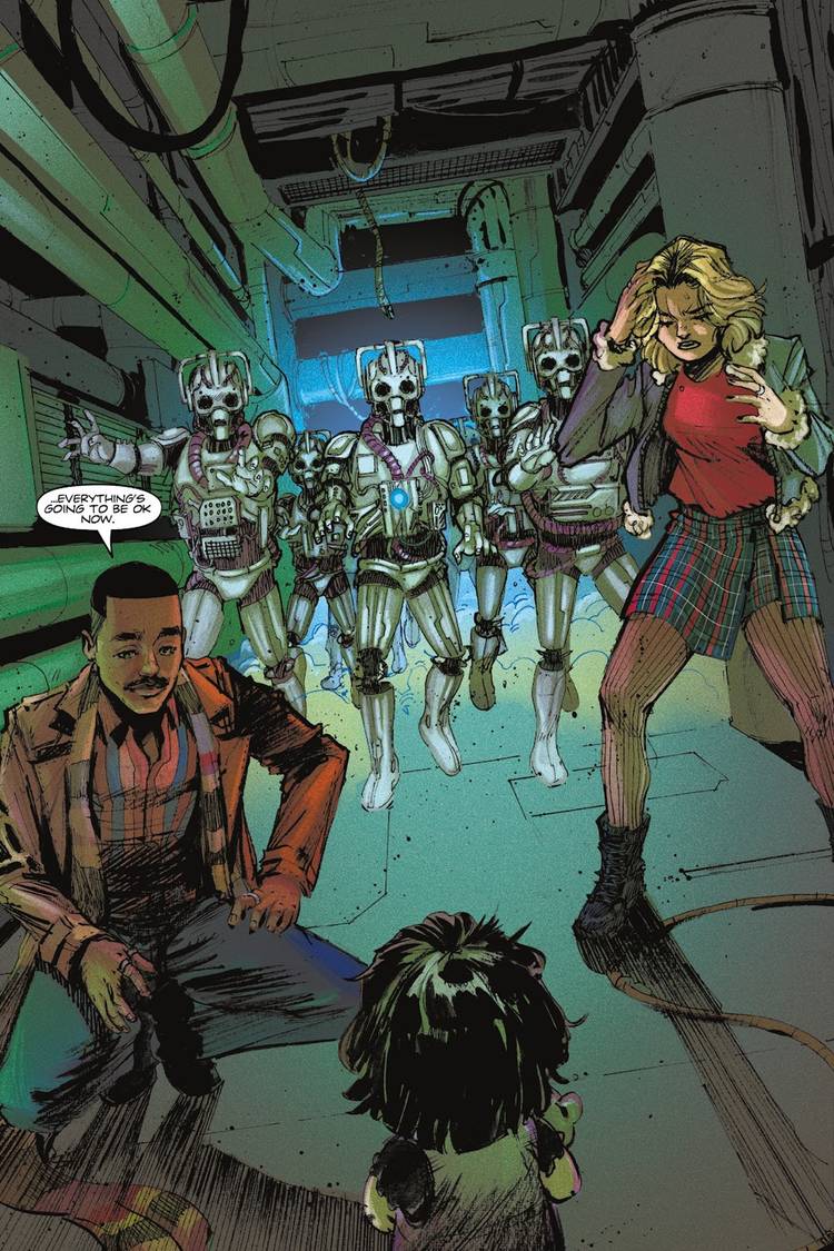 Doctor Who: El decimoquinto doctor #1 – escrito por Dan Watters, con arte de Kelsey Ramsay – revela que a principios del siglo 29, los Cybermen se vuelven mucho más retorcidos y distorsionados que nunca antes, ya que aparecen en una forma horrorosa y zombificada.