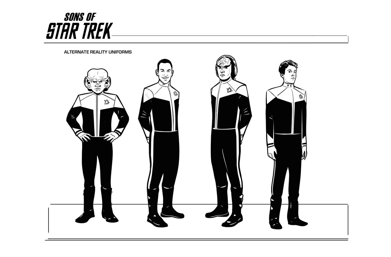 Anunciado hoy en IDW Star Trek Panel de cómics en la Comic Con de Nueva York. Hijos de Star Trek Será escrito por Morgan Hampton y dibujado por Ángel Hernández. Aunque IDW permaneció en silencio sobre los detalles exactos, sí brindaron un vistazo a dos portadas variantes que revelan no solo Hijos de Star Trek la estrella Jake Sisko y Alexander, pero también a Nog y Q Junior, el hijo del omnipotente Q. Otra portada que debutó en la Con mostró a Alexander parado en una celda de la Federación mientras Jake se sienta tristemente afuera. Finalmente, una hoja de diseño de personajes muestra a los cuatro protagonistas del libro, todos vistiendo uniformes de la Flota Estelar.