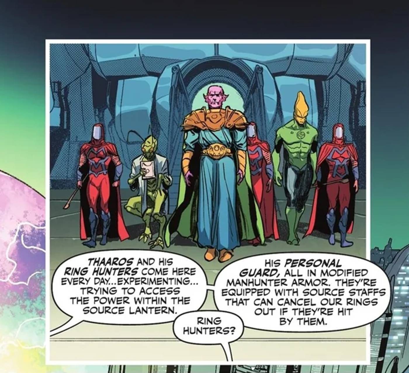 Thaaros ha hecho todo lo posible para reforzar su control sobre el Green Lantern Corps. La creación de los Ring Hunters le aseguró que aquellos que no cumplieran con sus cambios serían tratados. Pero ahora, Hal les está mostrando a sus amigos que los nuevos y mejorados Manhunters no son tan peligrosos como parecen, al menos si pueden conseguir los nuevos Power Rings. Los Ring Hunters podrían representar una amenaza para la Linternas verdes ahora, pero su reinado podría durar un tiempo prestado.