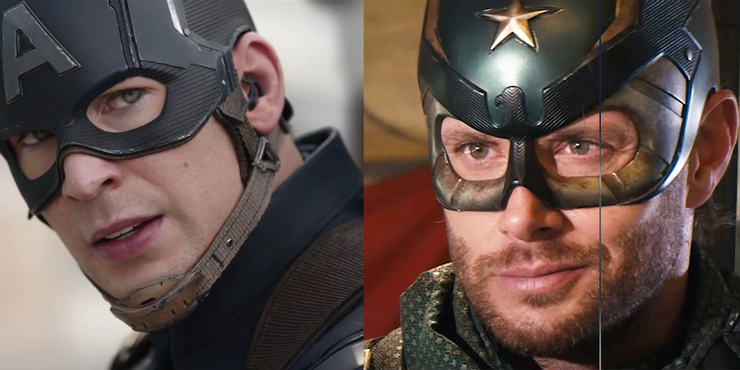 Una de las incorporaciones más esperadas a Los chicosLa alineación de la temporada 3 es Jensen Ackles como Soldier Boy. Soldier Boy es un líder patriótico que luchó en la Segunda Guerra Mundial después de ser uno de los receptores originales del compuesto químico V que induce superpoderes. Probablemente fue congelado criogénicamente después de la guerra y reanimado en la actualidad. Es difícil pasar por alto los paralelismos entre él y el líder de Los Vengadores, el Capitán América (interpretado por Chris Evans en acción real). Si bien el nombre de Soldier Boy podría no gritar “patriota“De la misma forma que lo hace Homelander (Antony Starr), su atuendo es extremadamente similar al del hombre estrellado con un plan de Marvel. Su casco, escudo y atuendo táctico son básicamente versiones verde oscuro de lo que el público vio al Capitán América en la mayoría de sus apariciones cinematográficas. Soldier Boy incluso luce vello facial similar a la barba que Steve Rogers tenía hacia el final de su carrera en MCU. Queda por ver qué tan patriótico se comportará Soldier Boy en la pantalla, pero sus orígenes en los cómics lo muestran tan leal a la causa del país como el Capitán América, incluso si no es tan noble o valiente.