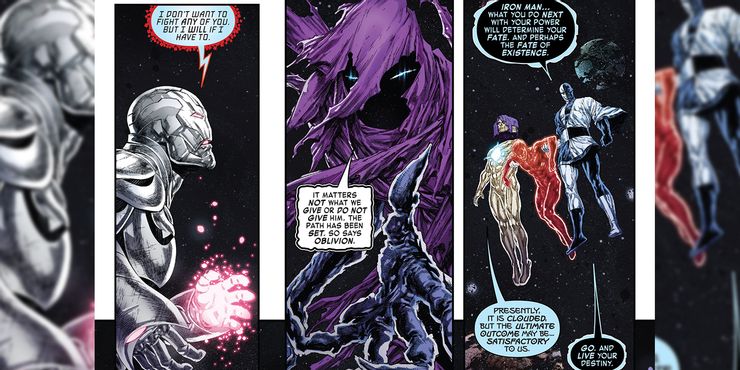 El destino del Universo Marvel podría estar en manos de Hombre de Acero después de que el héroe ganó los asombrosos poderes de un dios. En Hombre de Acero # 15, los seres cósmicos más grandes que existen se enfrentan a Tony Stark, diciéndole al héroe recién potenciado que lo que haga a continuación no solo determinará su destino, sino también quizás el destino de toda la existencia.