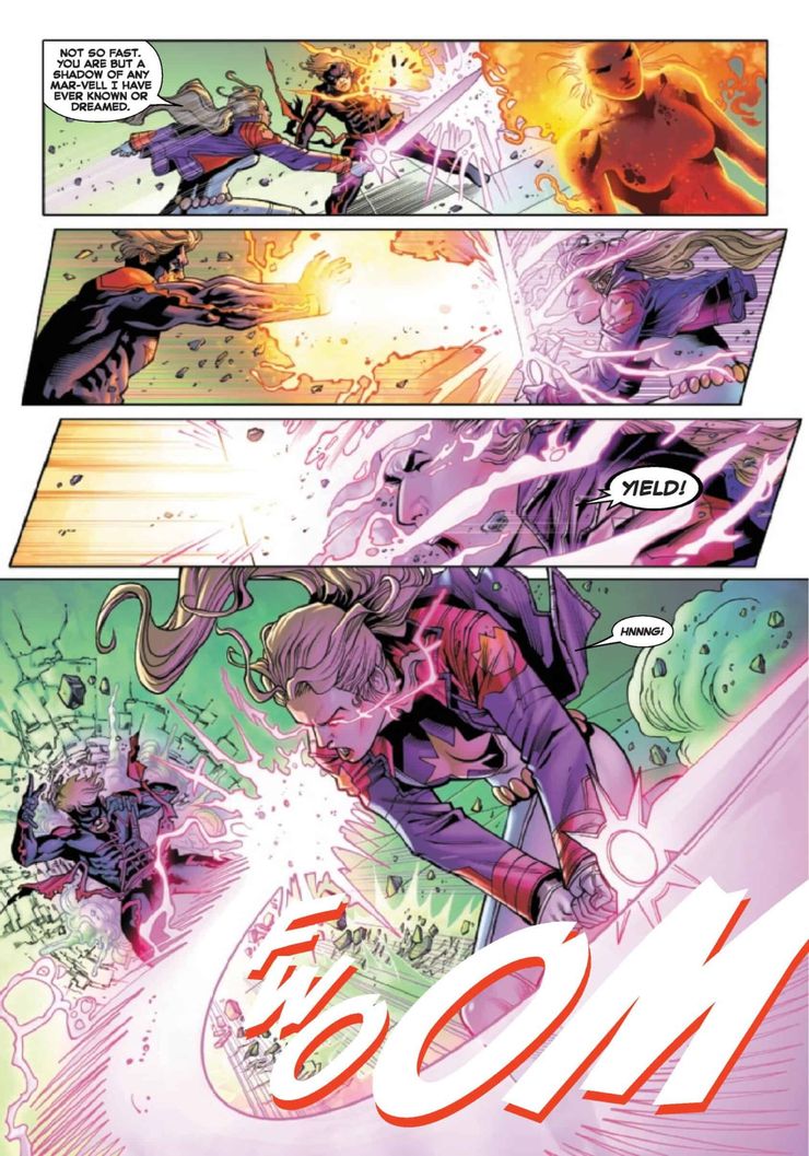 Los nuevos poderes ardientes de Captain Marvel están en exhibición completa en una nueva vista previa de Captain Marvel # 35, que sorprende a sus compañeros héroes de Marvel.