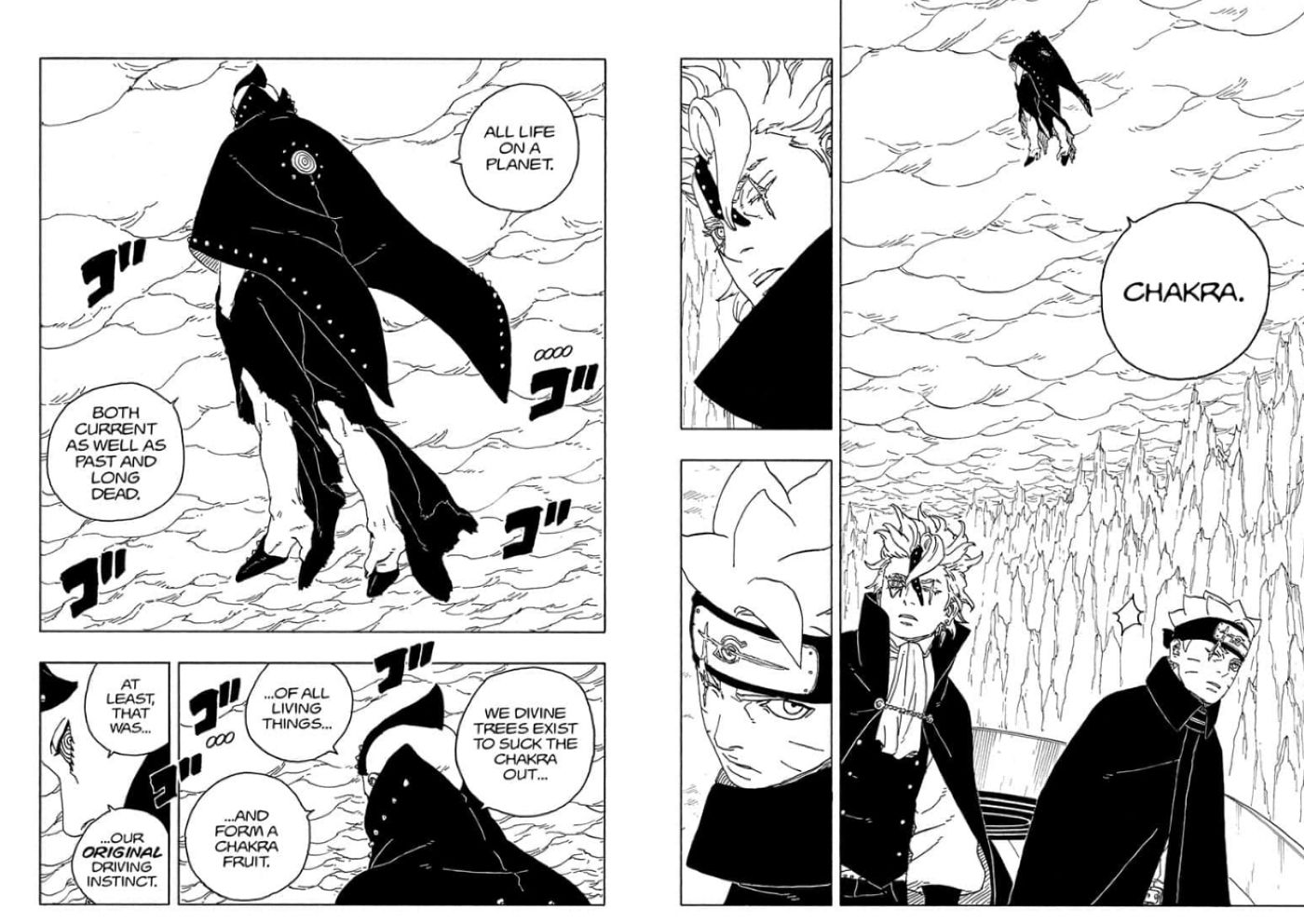 “/> Estas cuatro criaturas son “árboles divinos conscientes de sí mismos”, nacidos después de Code’s Claw Grimes, nacidos del Diez Colas, absorbieron seres humanos y obtuvieron nueva conciencia y poderes. Son tan fuertes que incluso Boruto, ahora dominado, huyó de inmediato porque parecía que no había forma de derrotarlos.