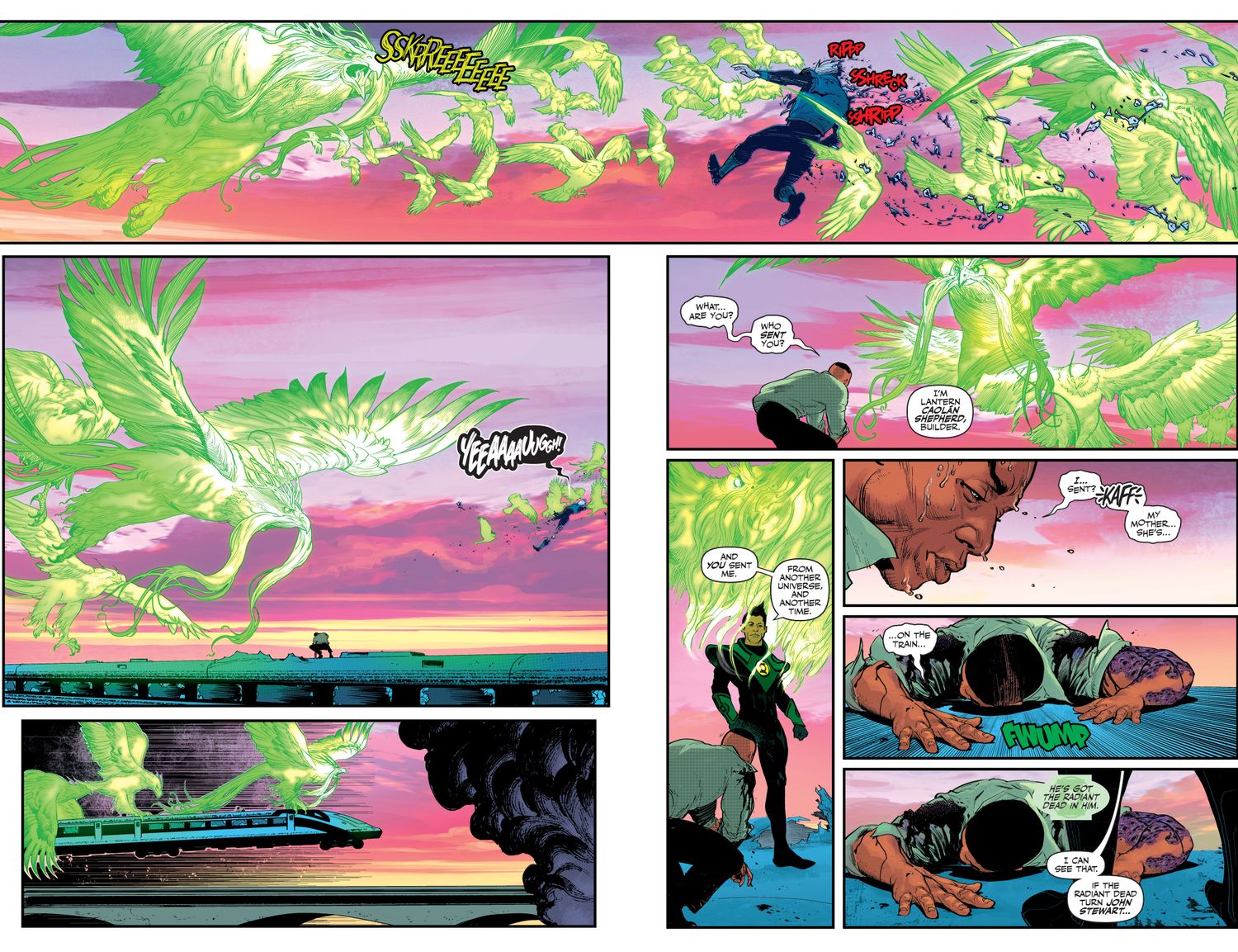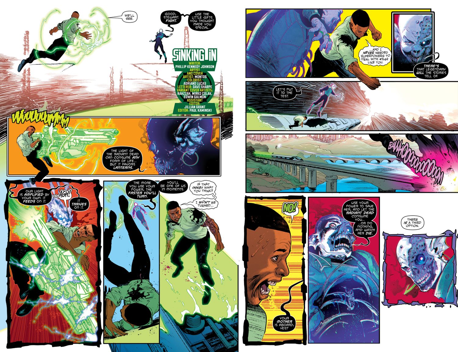 “/> Mientras Green Lantern se defiende, Varron le dice a John que Radiant Dead consume toda la vida, pero que a ellos les encanta especialmente Emerald Light. John descubre que su fuente de poder amplifica el poder de Radiant Dead, y cuanto más usa John sus habilidades, más rápido se propagará su infecciónacelerando la conversión de Juan.