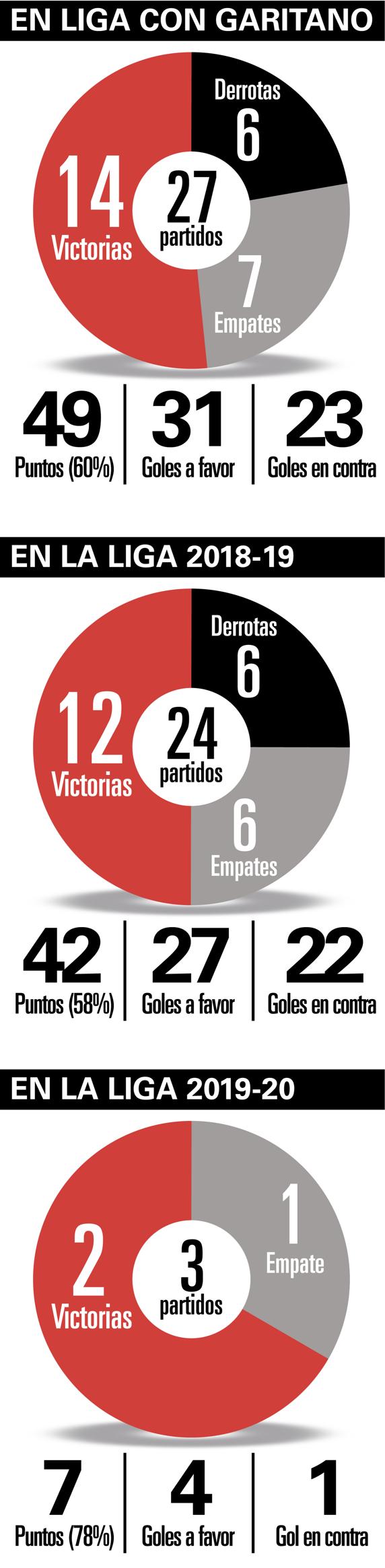La buena labor de Garitano, que está teniendo continuidad en el arranque de esta campaña, se traduce en un dato fundamental. El Athletic ha sumado con el deriotarra el 60% de los puntos que ha habido en juego en las 27 jornadas de Liga disputadas entre una y otra campaña. Esto es, 49 de 81 puntos posibles.