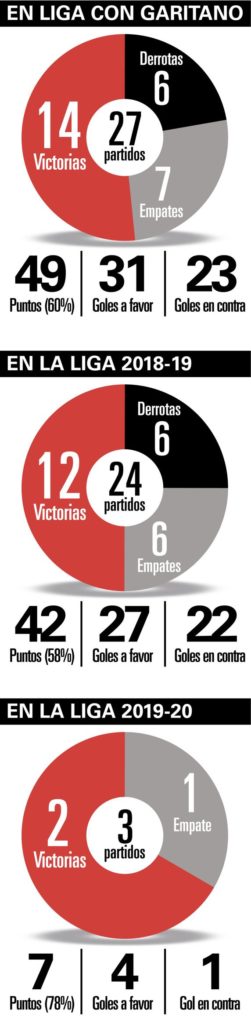 De los 24 encuentros ligueros que el Athletic jugó la anterior temporada entre diciembre del año pasado y el mes de mayo del actual 2019, ya con Garitano a los mandos de la nave rojiblanca, la mitad de ellos terminaron en victoria para los leones.