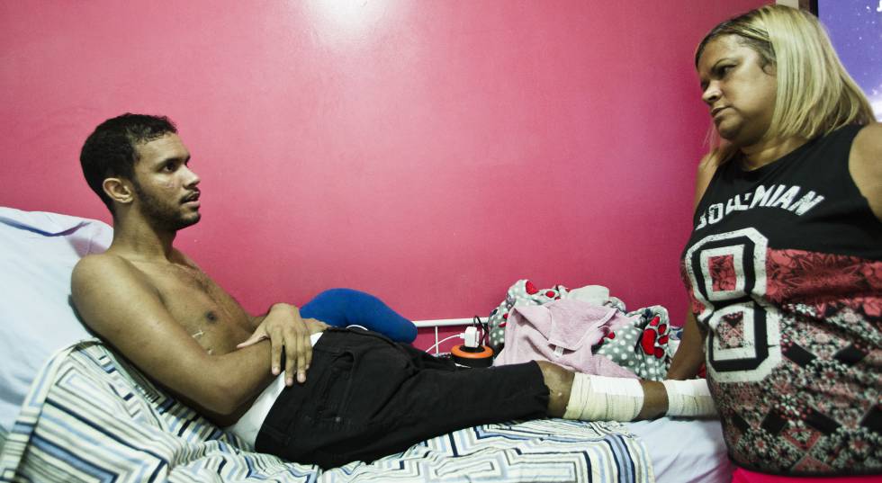 Si no le hubieran disparado, al día siguiente hubiera ido con su hija Beatriz, que entonces tenía dos años, a la playa. Se lo había prometido, pero no pudo cumplir su promesa. Solo sonríe cuando habla de ella y nos muestra su fotografía, que preside su cama. Apenas puede levantarla desde que está en esta situación. A Irone, su madre, la llamó por teléfono otro de sus hijos y le informó del tiroteo. “¿Por qué? Mi hijo no es un bandido. ¿Por qué? No es posible. Vitor es un buen chico. Es músico y muy trabajador. Nunca se ha metido en líos”.