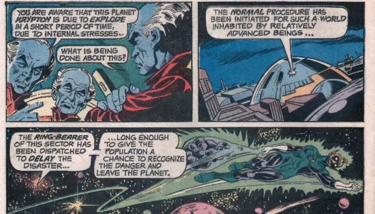Cuando el planeta natal de Superman, Krypton, estaba a punto de explotar, un Green Lantern intentó salvarlo, pero los Guardianes impidieron que se hiciera más.