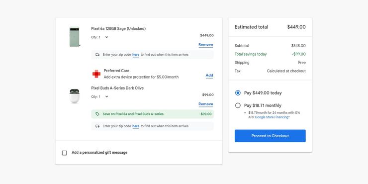 Si bien Google incluye auriculares gratuitos con el Pixel 6a, los compradores deberán comprar un cargador si aún no tienen uno, ya que no está incluido en la caja. El Pixel 6a admite una carga de 18 W y es compatible con el adaptador de corriente USB-C de 30 W de Google, que tiene un precio de $25. También hay oficiales Píxel 6a estuches que comienzan en $24 y un protector de pantalla que cuesta $49.99.