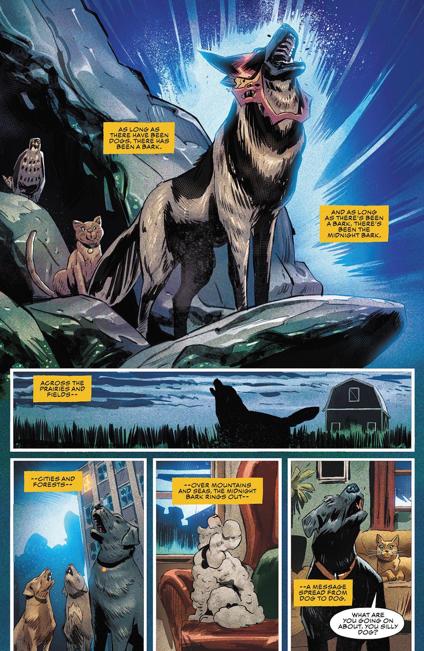 En Soltado #2, Marvel le da su propio toque a esto hombre de arena cuento. Habiendo descubierto el complot de Blackheart, Pet Avengers D-Dog, Redwing y Chewie acuerdan convocar a Throg. Redwing y Chewie no están seguros de cómo hacerlo, pero D-Dog los hace a un lado, desatando lo que ella llama “el Ladrido de Medianoche”. Los perros utilizan este tipo especial de ladrido para comunicarse en momentos de angustia, y D-Dog lo usa para enviar una señal a Bats, el perro de Doctor Strange, quien a su vez convoca a Throg. En hombre de arena, Los gatos le dieron la espalda, pero en Marvel desatada #2, los perros superhéroes del Universo Marvel se unieron para ayudar, dándole un giro divertido a un clásico. hombre de arena historia.