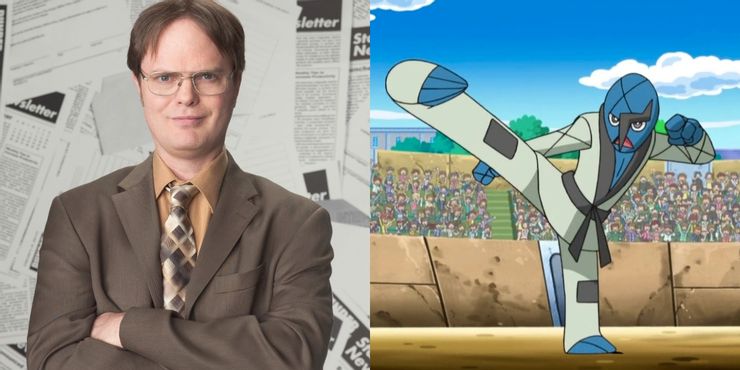Dwight tiene tantos pasatiempos y momentos definitorios de carácter que podría coincidir con varios Pokémon; su amor por los osos va con Ursaring, y su trabajo de detective se conecta con Gumshoos, pero es uno de los Pokémon de tipo lucha más fuertes que encarna lo que más le importa a Dwight.