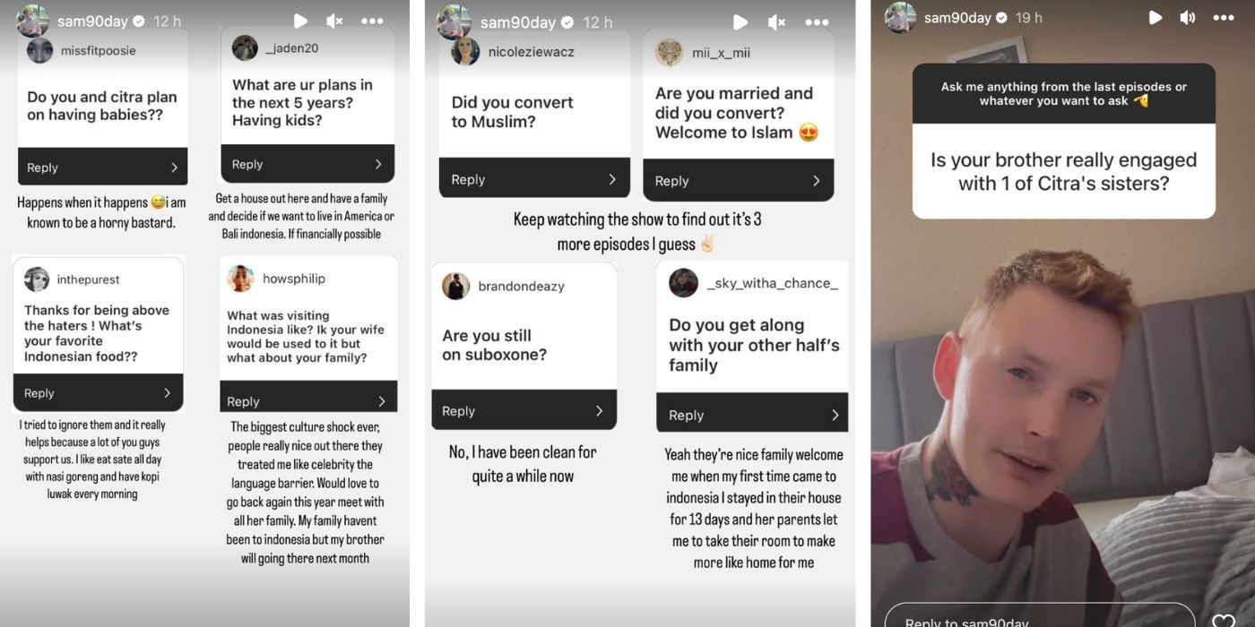 Sam dijo que su familia nunca había estado en Indonesia, pero que su hermano tiene planes de ir allí el próximo mes. El hermano de Sam está comprometido con una de las hermanas de Citra. Su hermano Timothy conoció a la hermana de Citra, Nafa, cuando su familia vino a Missouri para asistir a la boda. Se suponía que Sam y Citra se casarían en Indonesia. y su familia no iba a ser parte de la ceremonia ya que se suponía que Sam estaría de visita solo. Si eso sucediera, Timmy y Nafa nunca se habrían conocido. “Son parecidos, son como gemelos pero están comprometidos y a punto de casarse”. Sam confirmó en su historia de Instagram.