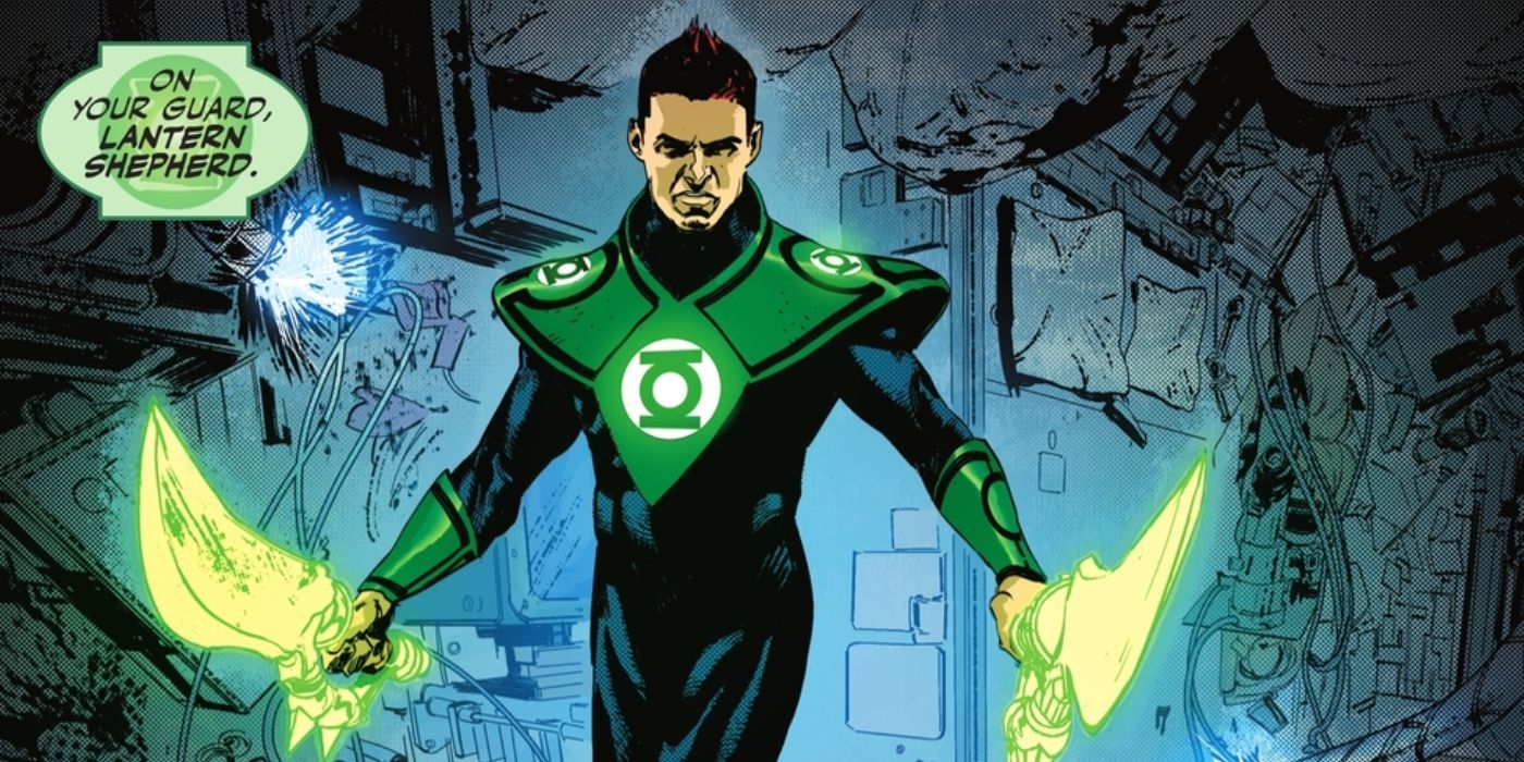 - Shepherd impresiona a John Stewart con construcciones de alta fantasía para derrotar a Radiant Dead en Green Lantern: War Journal #6.