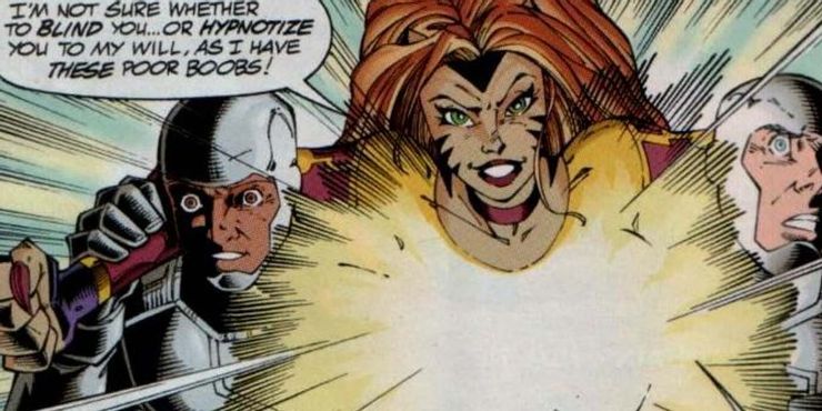 Uno de los villanos más extraños de DC, poderoso dotadoTiene poderes tan inapropiados que no es de extrañar que el personaje haya quedado en el olvido con el tiempo. en el 1998 Justicia Jóven serie de DC Comics, debutó la villana, donde hizo gala de sus poderes que le permitían hipnotizar a las personas con sus pechos. Sin embargo, dada la naturaleza inapropiada de sus poderes, el editor se aseguró de que en sus dos apariciones en cómics, la fuente de sus habilidades siempre estuviera oculta y nunca se viera.