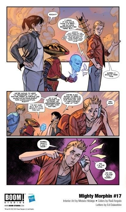Mat novio (ultraman, Salir adelante por sí mismo), artista Moisés Hidalgo (Sangre oscura), colorist Raúl Angulo (Buffy la caza vampiros) y el rotulista Ed Dukeshire (Thor contra Hulk, Increible hulk) están listos para asumir el Morfina poderosa historia Parrott permanecerá en el Guardabosques título que también es publicado por BOOM! Estudios. Ambas historias se encaminan por un nuevo camino. Después de la caída de los Empyreals, la partida del Blue Emissary y el final de la Guerra Eltariana, Matt y Grace deben unirse para restaurar el Centro de Mando. El New Green Ranger y el antiguo Ranger, respectivamente, podrían ser los catalizadores para reconstruir o destrozar a los Rangers.