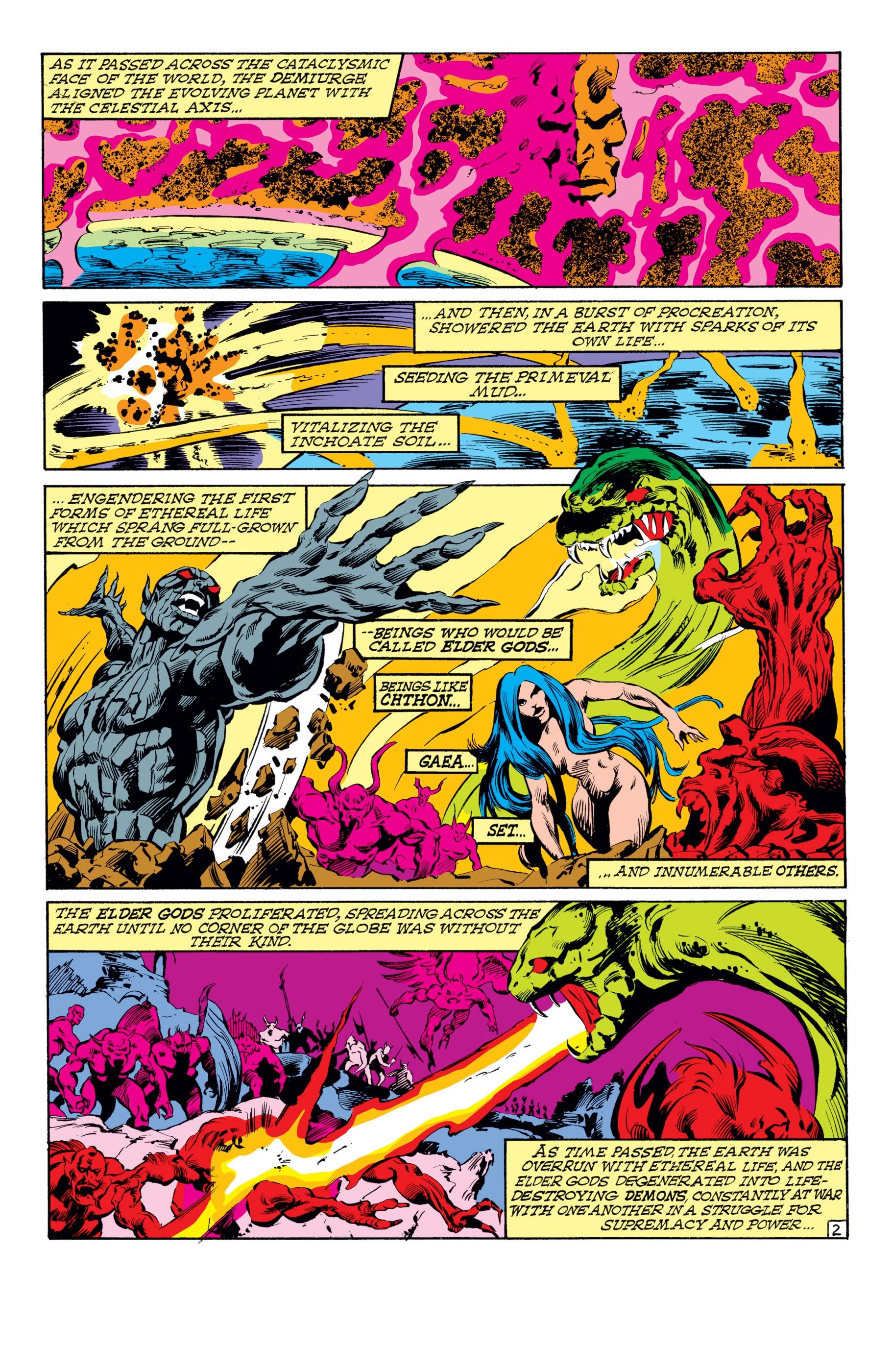 “/> Creados por el Demiurgo, la encarnación viviente de la energía vital de la Tierra, los Dioses Mayores se extendieron por toda la Tierra y eventualmente se volvieron belicosos y brutales. Eso fue hasta que la madre de Thor, Gea, el único Dios Mayor heroico, tuvo un hijo con el Demiurgo: el dios del sol Atum, también llamado Demogorge, quien destruyó a la mayoría de los Dioses Mayores.
