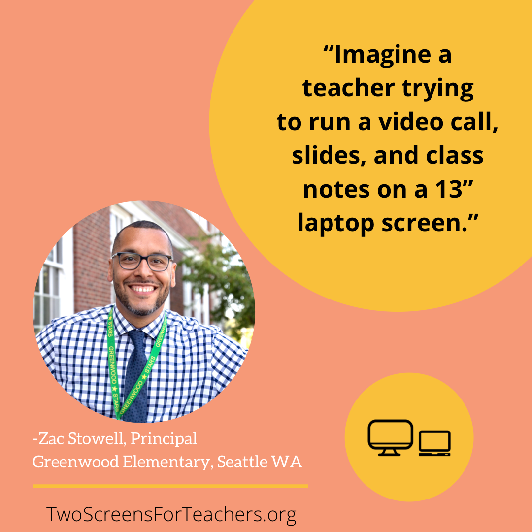 “La mayoría de los maestros con los que hablé nunca habían considerado tener un segundo monitor, pero inmediatamente comprendieron el valor de poner a sus estudiantes en una pantalla y los planes de lecciones en la otra”, dijo. “Cuando obtienen un nuevo monitor, la gratitud es intensa”.