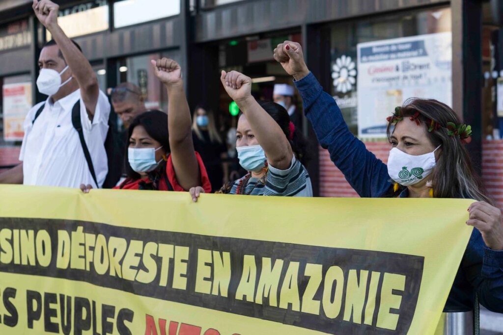 Fany Kuiru, líder indígena y miembro de la Organización Nacional de los Pueblos Indígenas de la Amazonía Colombia (OPIAC), lideraba la protesta y justificaba la acción diciendo que “como pueblos originarios dueños de los territorios amazónicos, exigimos mayor responsabilidad a las empresas que están detrás del expendio de carne a los supermercados y a estos sepan de dónde procede la carne que venden. Deben tener responsabilidades. Nosotros como líderes al frente de los pueblos indígenas de la Amazonía denunciamos que la deforestación está afectando a nuestra pervivencia porque nos están dejando sin territorio, sin biodiversidad y sin recursos naturales. Dependemos de la selva para los frutos, de los ríos para la pesca…la fuente de vida para nosotros está en la selva.”