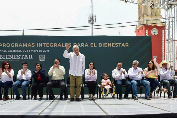 Al encabezar la entrega de programas Bienestar en Pinos, Zacatecas, López Obrador dijo que mejorarán los servicios de salud en todo el país, “porque eso que llaman Seguro Popular ni es seguro ni es popular, porque no hay médicos ni medicinas en los hospitales“.