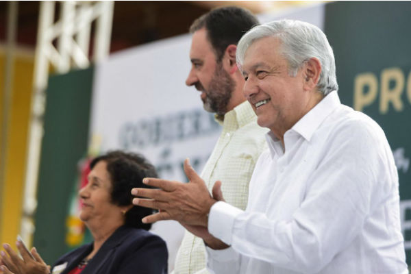 López Obrador estuvo acompañado por el gobernador Alejandro Tello, el presidente municipal, así como legisladores locales y federales, entre ellos Ricardo Monreal, líder de la bancada de Morena en el Senado.