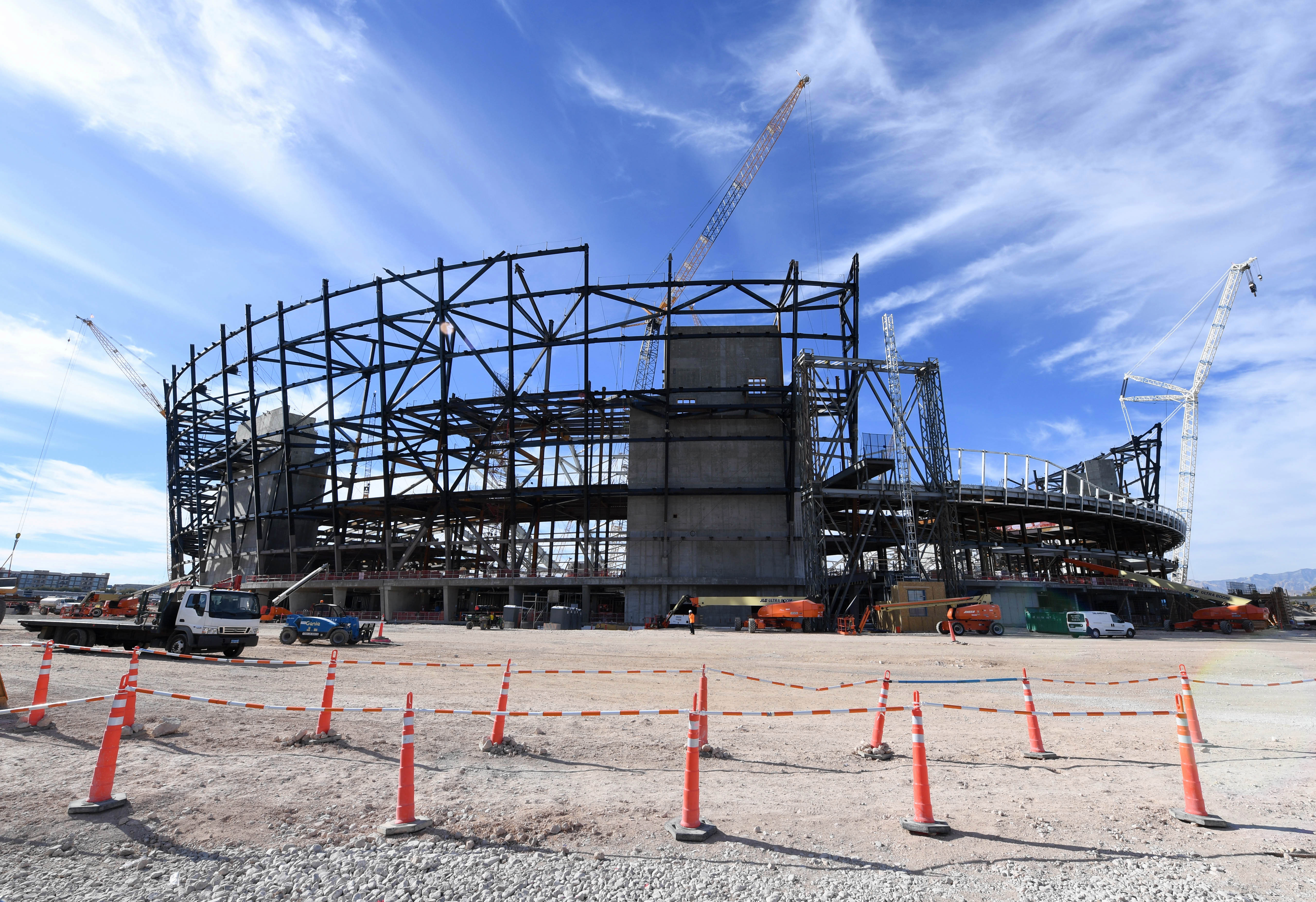 Pero la construcción del estadio se ha considerado “esencial” y aún continúa. El estadio, que albergará a los Raiders y al fútbol UNLV, abrirá este verano.