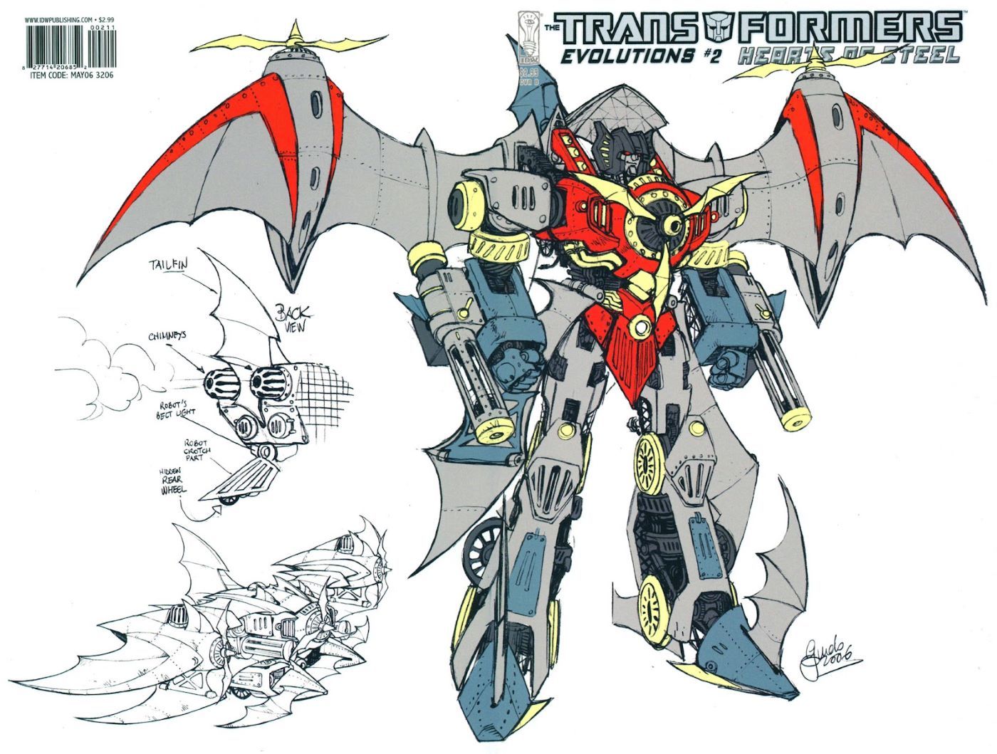 Transformers: Corazones de Acero #2 – escrito por Chuck Dixon, dibujado por Guido Guidi – presentó la transformación más notable de Starscream.