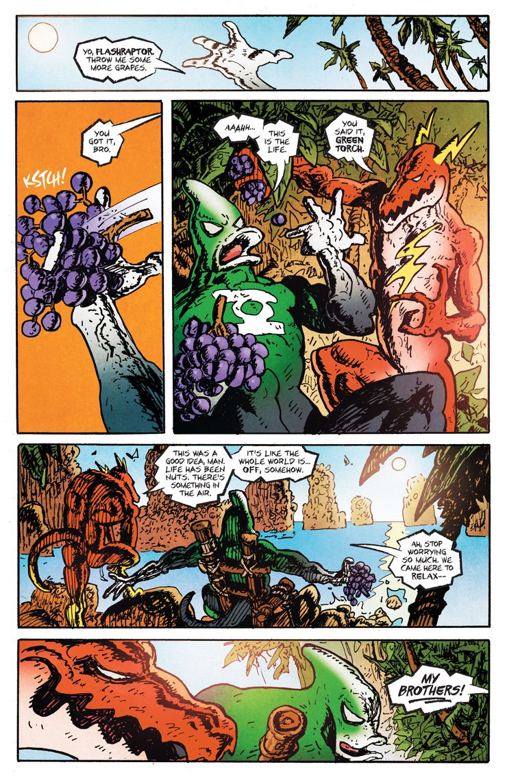 En la nueva miniserie Jurassic League de DC, se presentan nuevos dinosaurios-héroes que representan las versiones prehistóricas (y escamosas) de Green Lantern y Flash.