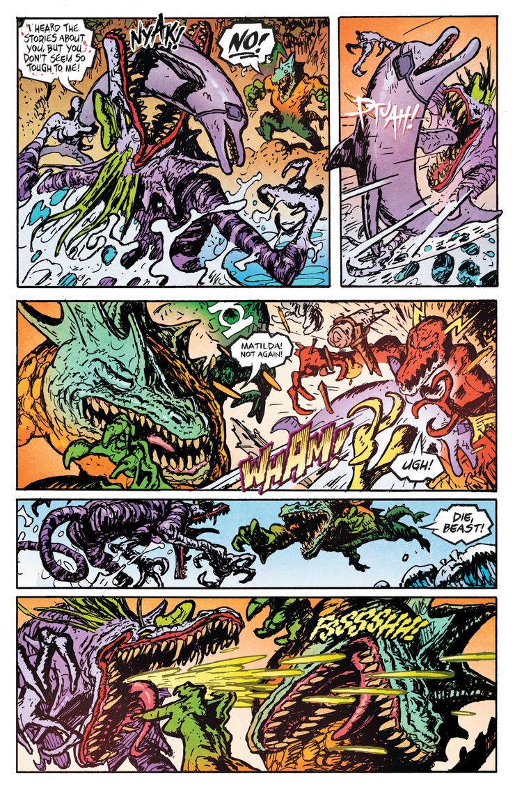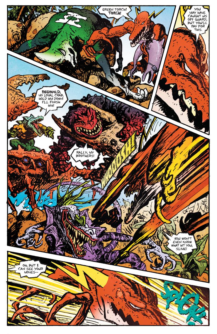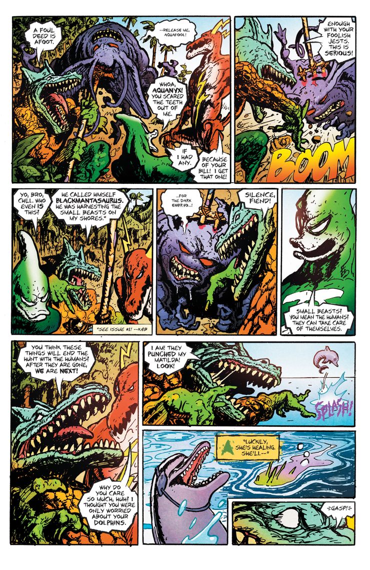 Como se ve en la nueva vista previa de Liga Jurásica #3, The Green Torch y Flashraptor se encuentran con el Aquanyx visto anteriormente que necesita su ayuda con urgencia. Muy pronto, el trío de héroes dinosaurios queda atrapado en un enfrentamiento épico con Jokerzard, Blackmantasuarus, Atrocitaurus y Reverse-Slash. Además, los héroes todavía tienen los poderes de sus homólogos humanos a pesar de ser lagartos gigantes. Aquí están las páginas de vista previa y la sinopsis con Green Lantern como hadrosaurio/parasaurolophus y Flash como velociraptor: