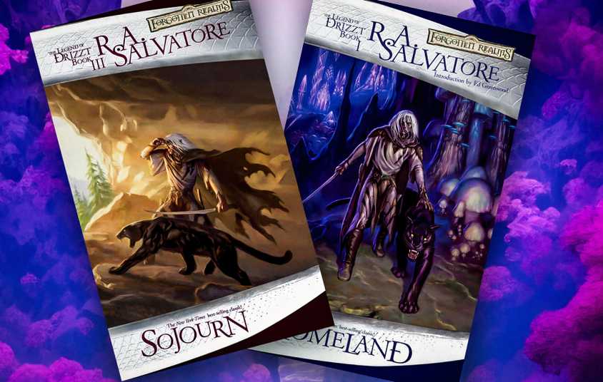 El Drow Drizzt Do’urden y los compañeros de la sala atraviesan los gruesos y delgados a través de los libros The Legend of Drizzt de RA Salvatore.