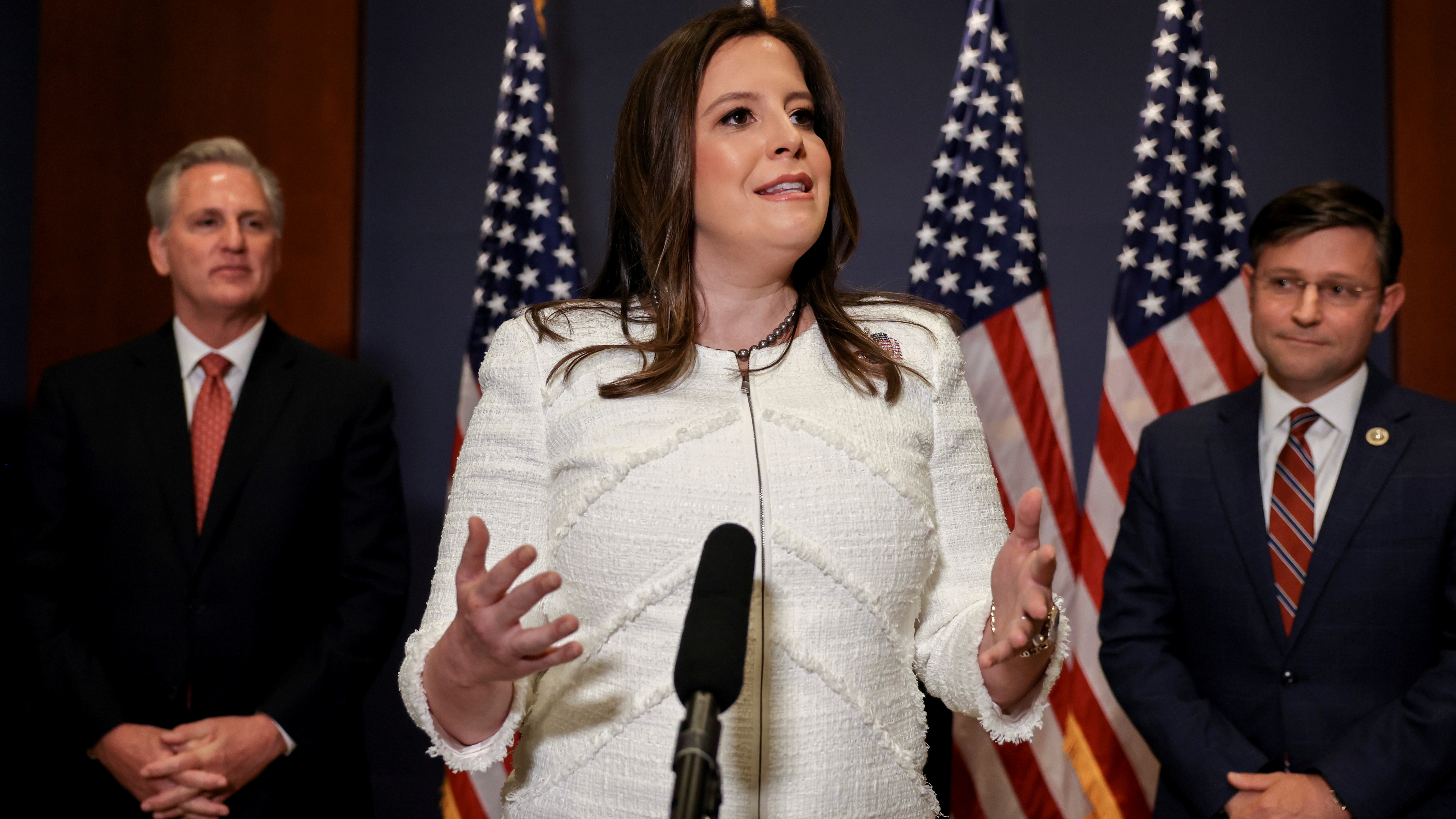 Stefanik, que contaba con el respaldo del expresidente y de los dos principales líderes de su bloque en el Congreso, recibió 134 votos, seguida por Chip Roy, representante de Texas, que logró 46. Este se presentó para el cargo porque considera que el historial de votaciones de Stefanik en el Congreso era demasiado moderado: la republicana se opuso a los recortes de impuestos aprobados por Trump en 2017 y a sus esfuerzos por desviar fondos presupuestarios para construir el muro con México.