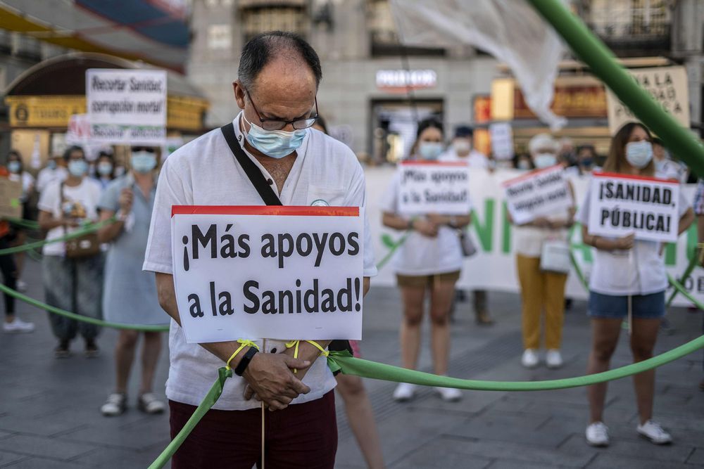 A punto de entrar julio, con la apertura de fronteras, las vacaciones y los permisos que necesitan las plantillas sanitarias, y arrastrando 1.000 casos diagnosticados en los últimos 14 días en la Comunidad de Madrid, las cifras de profesionales de refuerzo siguen siendo insuficientes y su situación, precaria. Los aplausos, los discursos y los homenajes están en la hemeroteca; la mejora de sus condiciones laborales y la promesa de los miles de contratos que hacen falta para estabilizar el sistema, también.“Y en ningún otro sitio, porque nunca se han producido”, espeta Víctor Aparicio, enfermero de UCI del hospital Gregorio Marañón y uno de los fundadores del movimiento Sanitarios Necesarios, que se concentraron ayer por sexto lunes consecutivo para reclamar una Sanidad Pública de calidad. Esta vez, a diferencia del resto, cuando lo hicieron en la entrada de hospitales y centros de salud, ocurrió en la puerta del Sol, frente a la sede del Gobierno de Isabel Díaz Ayuso.Sus demandas, dice Aparicio, son viejas conocidas: “Ni más recortes ni más privatizaciones, más recursos, contratos dignos, trabajar 35 horas semanales y que se refuerce la atención primaria. Justo lo que no ocurre”. Resume la situación con una frase: “Se ha pasado de una sociedad enferma de coronavirus a una sanidad enferma por agotamiento”.El movimiento nació en las máquinas de café de los hospitales, cuando todavía y sobre todo se hablaba del número de respiradores, de camas y de equipos de protección individual que faltaban, “pero menos de los recursos humanos, esos que son limitados, que no pueden ser creados en una fábrica ni en la industria textil”, dice el enfermero.Él, junto a otros profesionales del sistema sanitario —de Medicina, Enfermería, limpieza, administración y otros servicios—, como Toñi Delgado, de 44 años y enfermera del centro de salud Dr. Mendiguchía de Leganés, leyeron un manifiesto que quedó resumido en las pancartas de los alrededor de 400 trabajadores que se concentraron: “Luchamos para que nadie muera en soledad”, “Sí al reconocimiento de la carrera profesional”, “Bares abiertos centros de salud cerrados”, “El verbo cuidar es nuestra bandera”, “Solo el pueblo salva al pueblo”, “Hemos luchado sin armas”, “Contratos precarios”. Los coros sintetizaron su objetivo: “Sanidad Pública”, “Ayuso, dimisión”. Delgado recordaba entre aquellos carteles y aquellos gritos, con los ojos encendidos, a los 10 pacientes que ha perdido de coronavirus, informa Luis de Vega: “Recuerdo el miedo a contagiarme, el miedo a contagiar a mi familia. Tengo permanentemente presente a esos 10 muertos de mi cupo. Los recuerdo con sus nombres”.El arrastre de plantillas bajo mínimosLa situación de la primaria, los hospitales y otras áreas como el Summa 112 arrastran mermas desde hace décadas y la crisis de la covid-19 ha dejado ver, más que nunca y sobre todo, la falta de profesionales con la que se maneja la salud madrileña.Según los últimos datos de hospitales de la Consejería de Sanidad, del 5 de junio, de los 10.167 contratos de refuerzo que se hicieron durante la crisis —y que el Gobierno de Isabel Díaz Ayuso prometió mantener hasta el 31 de diciembre— están “asignados 9.934 según planes funcionales de los centros”, es decir, “para que los centros les vayan llamando según vayan venciendo los contratos que tenían”.La situación sigue siendo de un absoluto deterioro. Ahora, cruzando dedos porque no haya un rebrote, se ha pasado muy mal. Solo pensar que pueda ocurrir de nuevo… Da miedoEn atención primaria, a 29 de junio, son 737 de los 836 prometidos; y en Salud Pública —que junto a los centros de salud lleva el peso del control y la vigilancia de los nuevos casos de coronavirus— la Sanidad madrileña afirma que hay “144 profesionales con previsión de refuerzo de otros 41”, pero no detallan cuántos se han contratado específicamente para apuntalar los que ya había. Prometieron 400 primero, luego 172. Según datos de Comisiones Obreras, ese número es 16: “Para rastreadores, la semana pasada nos anunciaron que ultimaban 37 más, pero no nos consta que se hayan firmado. Y prometieron otros 70 en breve”.Los profesionales recuerdan que, de base, Madrid ya arrastra un déficit en la plantilla que ni siquiera se ha cubierto con los refuerzos por la covid-19 —600 médicos, por ejemplo, solo en primaria—, a lo que hay que sumar las bajas que aún hay por coronavirus y las vacaciones que han comenzado. Julián Ezquerra, de Amyts (Asociación de Médicos y Titulados Superiores de Madrid) sintetiza: “La situación sigue siendo de un absoluto deterioro. Ahora, cruzando dedos porque no haya un rebrote, se ha pasado muy mal. Solo pensar que pueda ocurrir de nuevo… Da miedo”.Información sobre el coronavirus:- Aquí puedes seguir la última hora sobre la evolución del coronavirus.- El mapa del coronavirus: así crecen los casos día a día y país por país- Guía de actuación ante el coronavirus- Todas las medidas contra el coronavirus en Madrid- En caso de tener síntomas, la Comunidad de Madrid recomienda evitar acudir al centro de salud salvo casos de extrema necesidad, usar la web coronamadrid.com y el teléfono 900 102 112