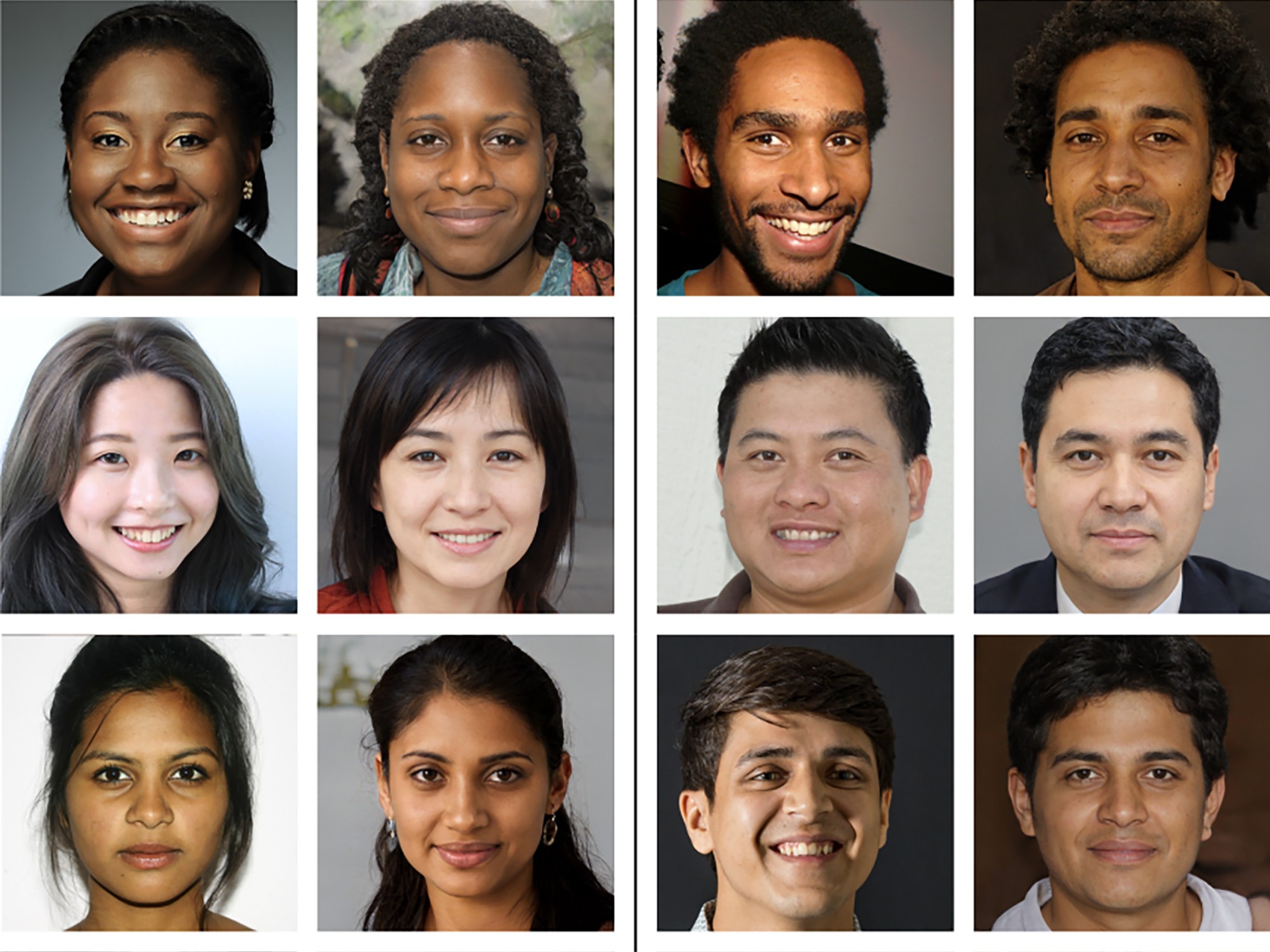 Todos los rostros analizados pertenecían a una muestra de 800 imágenes, la mitad reales y la otra falsas. La mitad sintética fue creada a partir de GAN. La muestra estaba compuesta por igual entre hombres y mujeres y de cuatro razas diferentes: afroamericanos, caucásicos, asiáticos orientales y asiáticos del sur. Para las caras reales recopilaron un rostro coincidente en cuanto a la edad, género, raza y apariencia general. Cada persona analizaba o puntuaba 128 caras.
