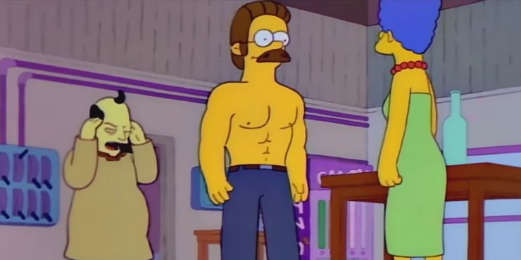 Flanders se da cuenta de que no se divierte ni hace nada espontáneo en “Viva Ned Flanders” de la temporada 10. Reconociendo que Homer es 100% divertido y espontáneo, le pide que le enseñe a vivir.