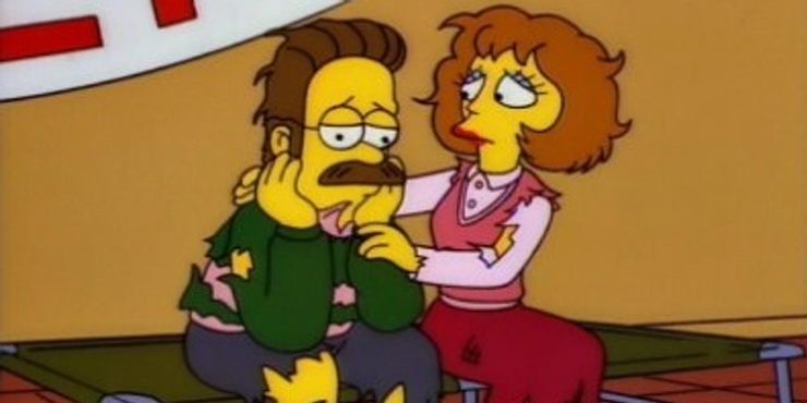 Ned y Maude adoptan a Bart, Lisa y Maggie cuando una serie de eventos desafortunados hacen que Homer y Marge sean tachados de padres negligentes y el estado se los lleva en la temporada 7 de “Home Sweet Homediddly-Dum-Doodily”.