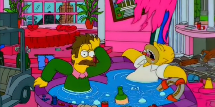Aunque Homer defiende a Ned en la conmovedora escena culminante del episodio (salpicada con suficiente material de broma, como “cada mejilla de su cuerpo”), para cuando aparecen los créditos finales, Homer ha vuelto a odiar a Flanders. Lisa agrega un meta guiño divertido a la audiencia en la escena final.