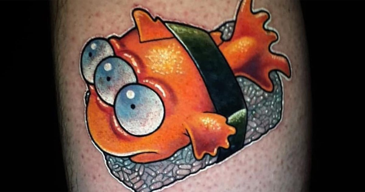 No sería un artículo sobre Los Simpsons sin un tatuaje de cómo Homero muestra su amor por el niño. Te hace preguntarte qué hizo Bart para molestar a Homer esta vez. ¡También puedes notar que la dona enorme en el fondo es la dona favorita de todos los tiempos de Homero ya que tiene chispas multicolores!