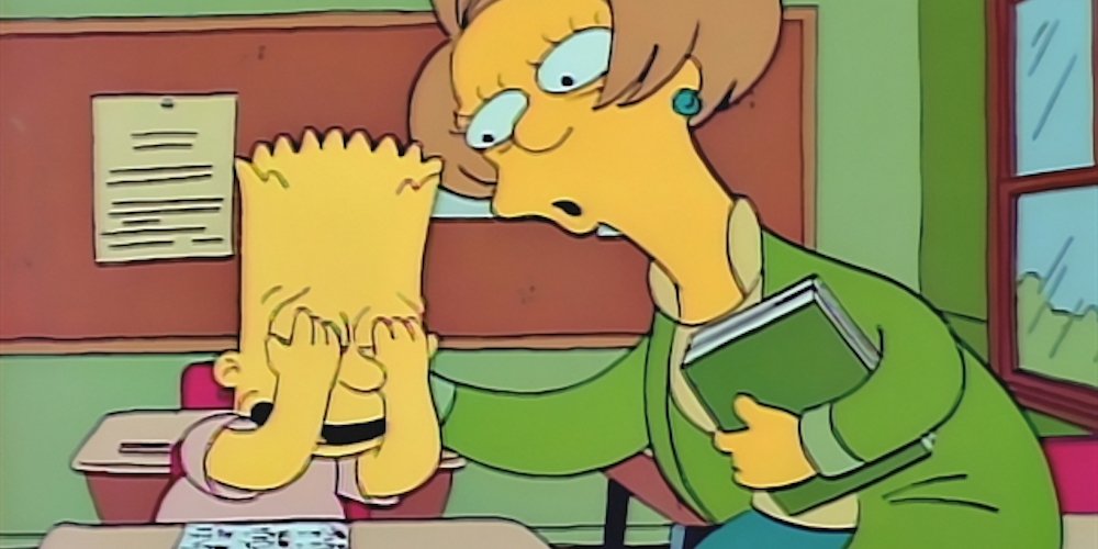 No es tanto un punto de historia sino un guiño al fallecimiento de la actriz de voz de la señorita Krabappel Marcia Wallace, uno de los momentos más desgarradores de Los Simpsons fue el mensaje que Bart estaba escribiendo en la pizarra, en el primer episodio grabado sin su adversario y maestro de cuarto grado. En lugar de una línea de broma, cubriendo el pizarrón, Bart simplemente escribió: "Realmente la extrañaremos Sra. K."