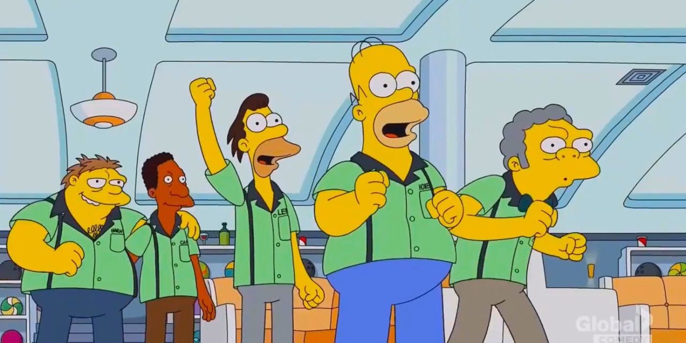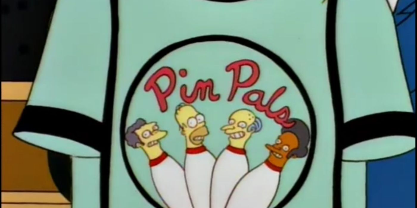 “/> Inicialmente, el equipo de Pin Pals, incluido Homer, vestía camisetas blancas lisas. Esta elección reflejaba su condición de amateur y la formación espontánea y algo desorganizada del equipo. Sin embargo, la evolución del equipo estuvo marcada por una importante mejora en su vestimenta. Los Pin Pals fueron objeto de burlas por su apariencia sencilla., lo que llevó a la adopción de camisetas de bolos distintivas y adecuadas. Estas camisetas, con sus colores vibrantes y el icónico logo “Pin Pals”, se convirtieron en un éxito instantáneo entre los espectadores.