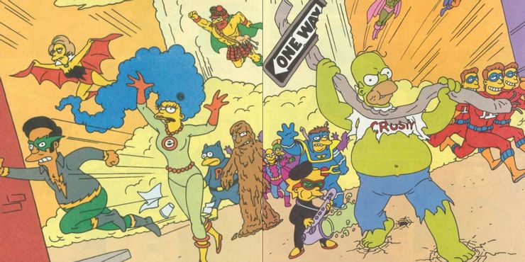 En un número de la serie Simpsons Comics, los residentes de Springfield, favoritos de los fans, se convirtieron en una legión de superhumanos que parodiaban a los personajes de Marvel.