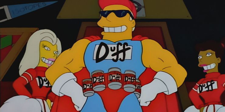 La mascota de Duff Beer es uno de los vestidores menos convencionales de Springfield, en gran parte debido a su cinturón de lata de cerveza y su capa de color rojo brillante. Duffman se basa en Bud Man, la mascota del superhéroe de Budweiser, y los dos hombres comparten la afición por llevar la ropa interior sobre los pantalones.