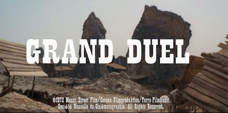 El gran duelo presenta a Lee van Cleef, una figura icónica asociada con el género spaghetti western. La película, dirigida por Giancarlo Santi, se convierte en una batalla culminante entre el sheriff Clayton de van Cleef y David Saxon de Horst Frank. Tarantino utilizado El gran dueloel tema principal como parte de la banda sonora de Matar a bill.