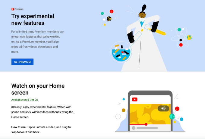 YouTube dice que la opción de probar las funciones se destacó para los suscriptores Premium hace unas semanas dentro de la aplicación de YouTube. También es la primera vez que YouTube ejecuta un programa de experimentación vinculado al servicio Premium, nos dicen.