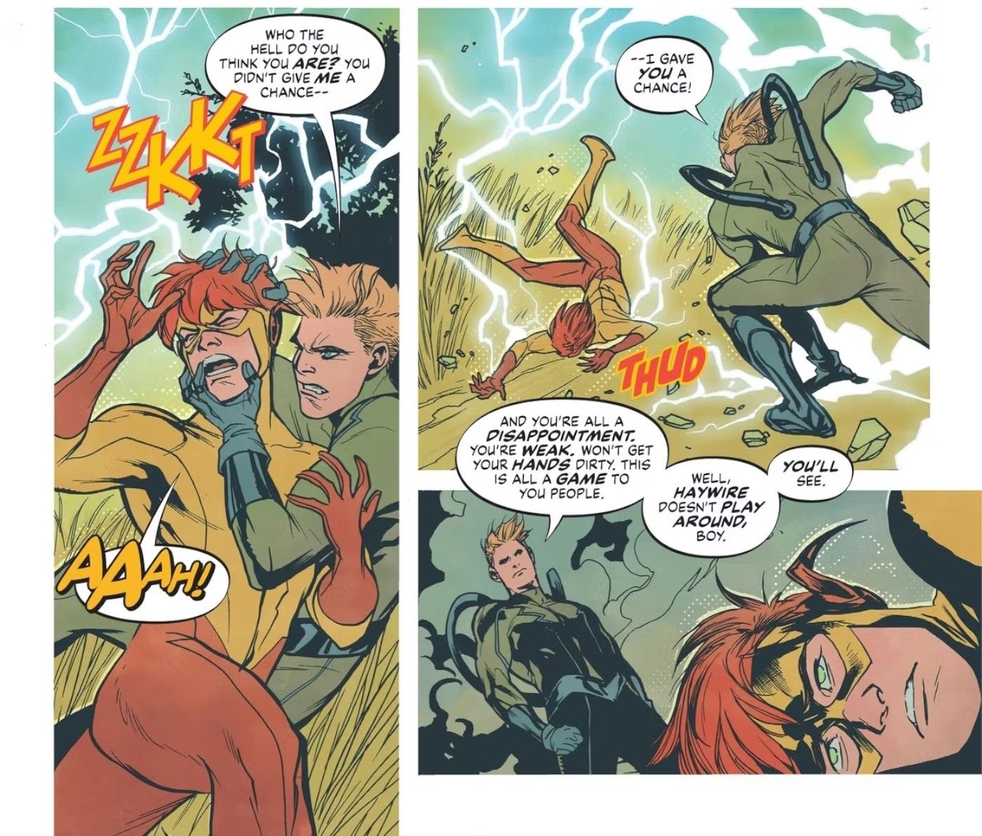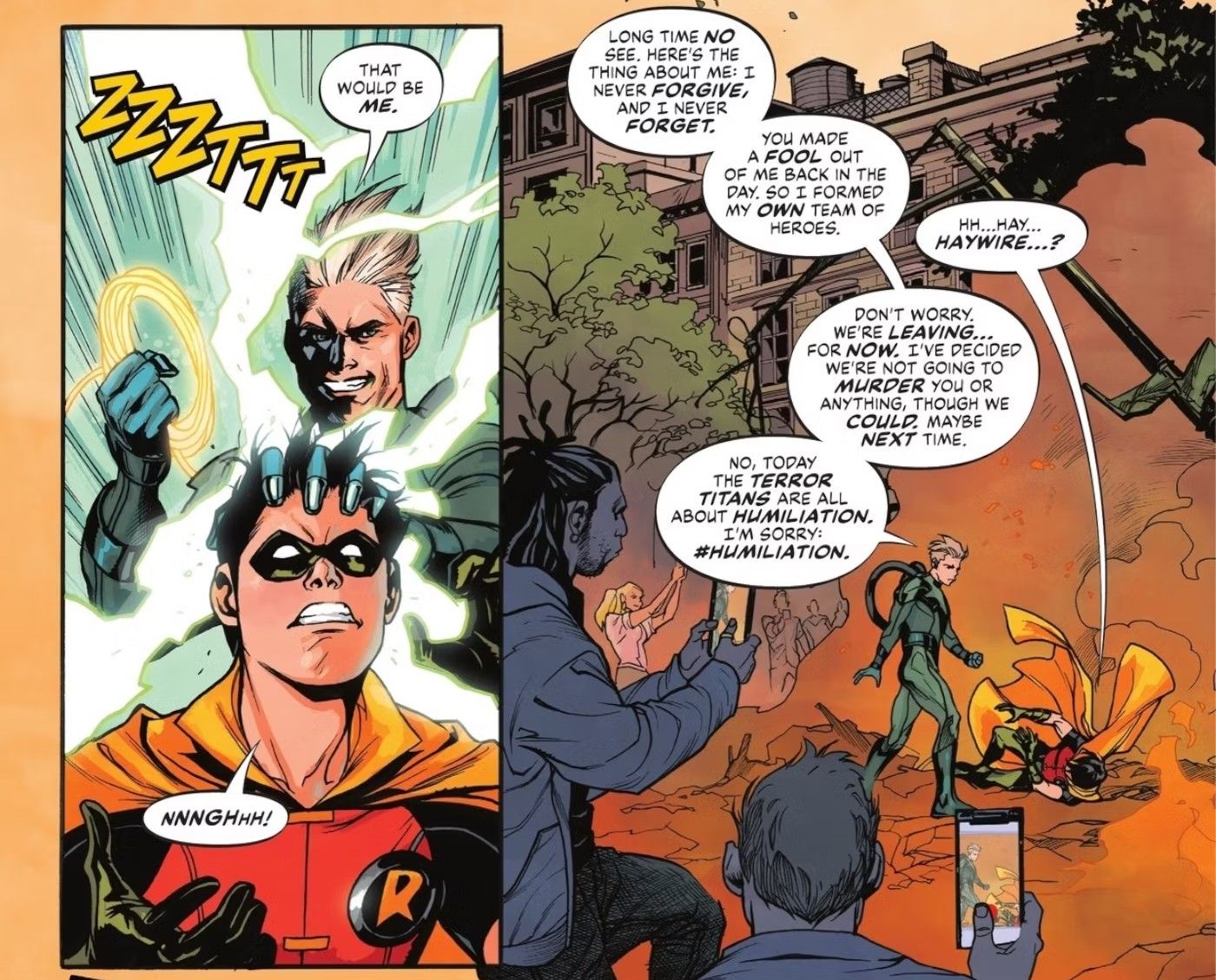 El efímero y olvidado miembro de los Jóvenes Titanes se revela en Los mejores del mundo: Jóvenes Titanes #5 de Mark Waid, Emanuela Lupacchino, Jordie Bellaire y Steve Wands. En este número, los Jóvenes Titanes son atacados por un grupo de antiguos villanos que de repente son mucho más fuertes de lo habitual. Mientras intentan unirse como equipo, rápidamente se ven abrumados y brutalmente derrotados, tanto por su disfunción como equipo como por un ex miembro conocido como Haywire.