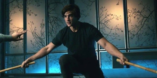 Grayson decide usar un bastón de madera, muy parecido a lo que usó como Boy Wonder, pero luego Rose lo corta por la mitad, lo que lo obliga a improvisar. Es aquí donde Grayson muestra sus habilidades con los bastones, las armas icónicas utilizadas por Nightwing en sus apariciones cómicas.