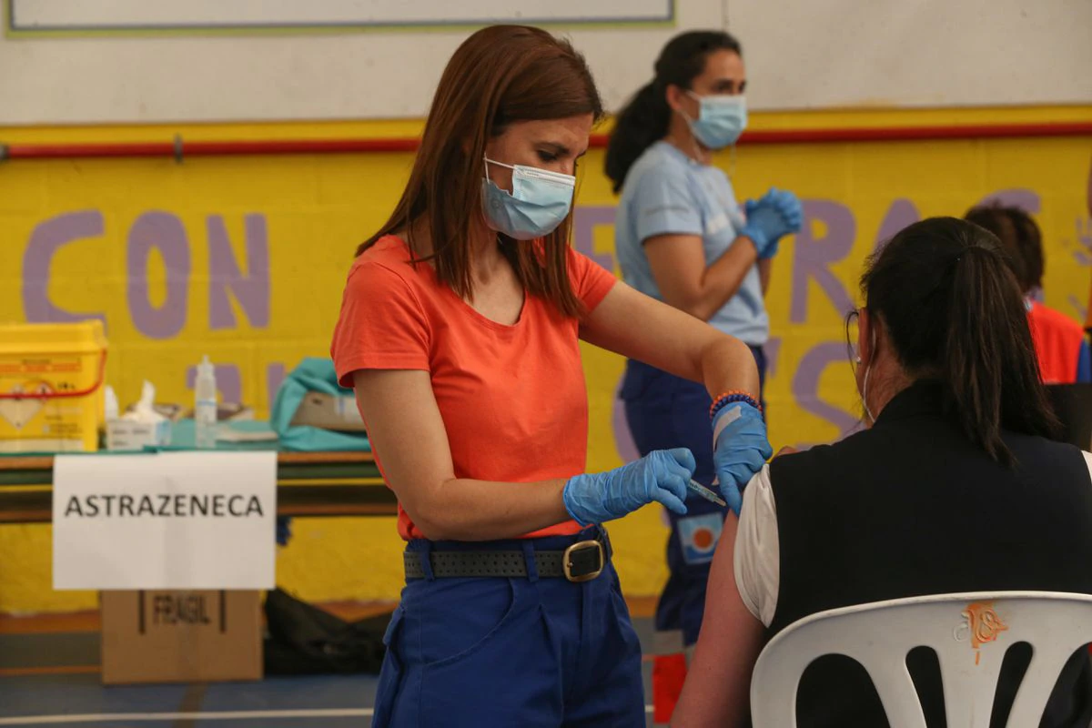 Si se tratara de una competición, en el punto de vacunación habilitado en el pabellón polideportivo de Gines (Sevilla), AstraZeneca hubiera ganado por goleada entre los 164 profesores de primaria y secundaria vacunados ya con una dosis de ese preparado, que a lo largo de la mañana de este miércoles han acudido a inyectarse la segunda. Solo cuatro han optado por Pfizer, según los datos facilitados por la coordinadora de Enfermería de Gines y Castilleja de la Cuesta.