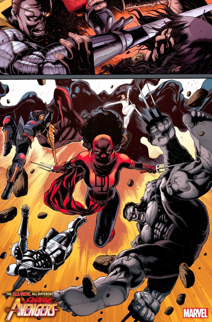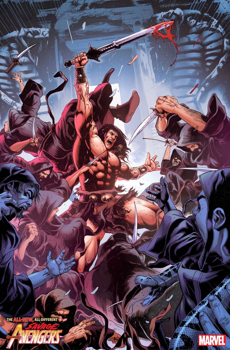 Cuando Marvel Comics volvió a adquirir los derechos para publicar cómics basados en Conan el Bárbaro, la editorial no perdió tiempo y lanzó dos nuevos títulos que involucraban al cimmerio además de incorporarlo nuevamente a su universo, y Los vengadores salvajes fue el resultado. El equipo estaba formado por algunos de los héroes más extremos y duros del establo de Marvel, incluidos Elektra, Venom y Punisher; lucharon contra gente como Shuma-Gorath y Kulan Gath, y la carrera anterior terminó cuando el equipo derrotó a Gath, aparentemente para siempre. Ahora, después de una pausa, el libro regresa con un nuevo número uno y una nueva alineación, que incluye incondicionales como Conan y Elektra, así como los nuevos miembros Cloak and Dagger, Anti-Venom, Black Knight y Weapon H. Vengadores salvajes completamente nuevos y diferentes estará escrito por David Pepose e ilustrado por Carlos Magno.