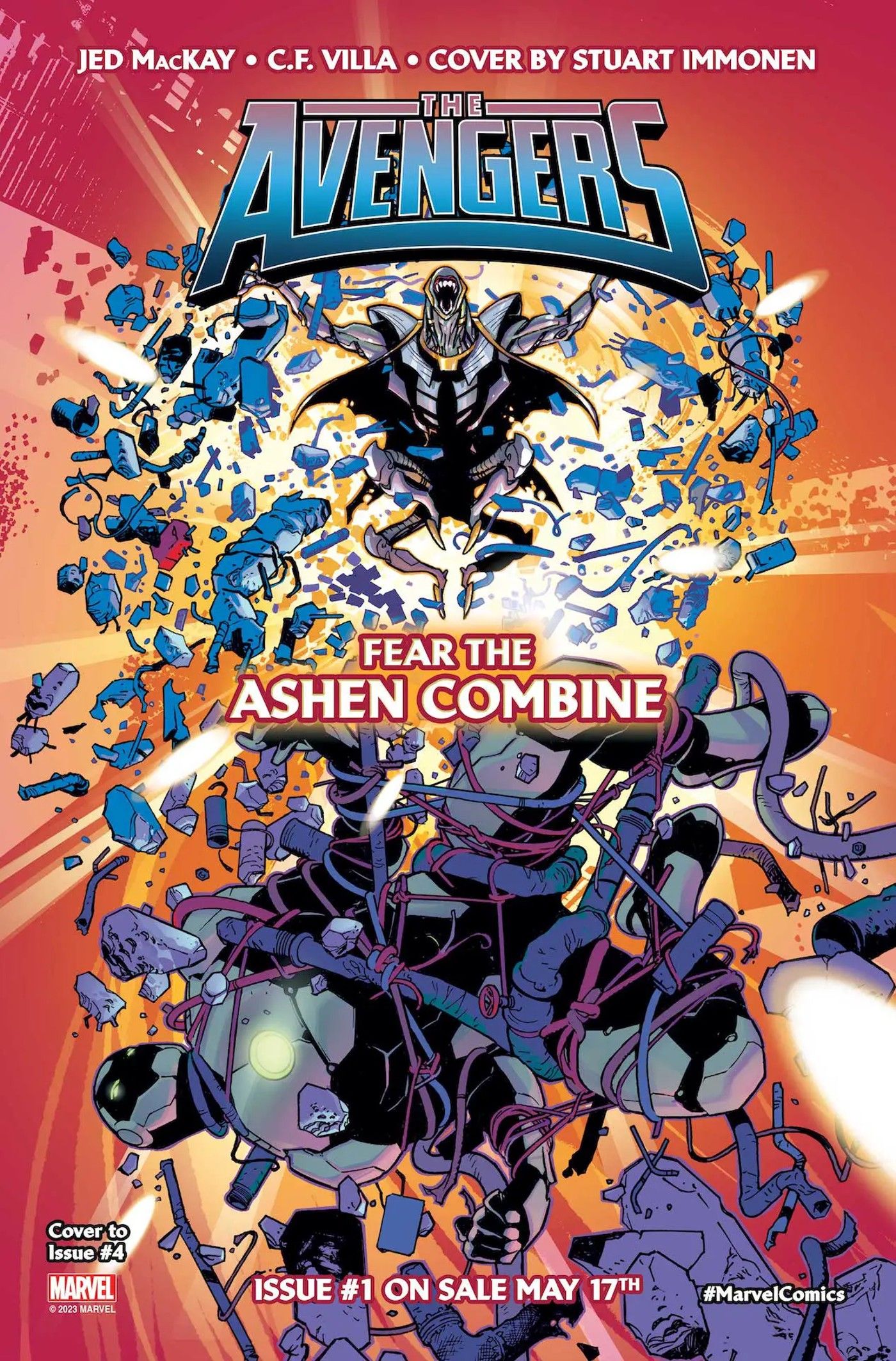 En una nueva versión de la portada de Vengadores #4 por Jed MacKay y CF Villa, se muestra a Iron Man luchando contra Citysmith, a quien Marvel ha descrito como “un artista loco que retuerce las ciudades como si fueran arcilla.El arte de Stuart Immonen muestra a Tony envuelto en tuberías y cemento mientras el villano se cierne sobre él. Marvel se ha burlado de que Ashen Combine no se parecerá a nada que los Vengadores hayan enfrentado antes, con cada miembro que posee un poder que podría empujar al equipo. hasta sus límites: una mazmorra viviente, un dios falso y un devorador de ciudades se encuentran entre ellos. Vale la pena señalar que Iron Man está usando una nueva armadura en el arte: este parece ser su nuevo traje sigiloso, que los fanáticos vieron en la portada. arte para el próximo Hombre de hierro invencible #9