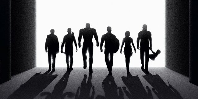 El cartel más reciente de SG Posters muestra a los seis Vengadores originales mientras caminan por un pasillo con poca luz. Una luz en sus espaldas arroja sombras en el piso, aunque las sombras no son de ellos, son de los héroes que fueron asesinados en Vengadores: la guerra del infinito. De izquierda a derecha, los Vengadores que aún viven son Bruce Banner (Mark Ruffalo), Clint Barton (Jeremy Renner), Tony Stark (Robert Downey Jr.), Steve Rogers (Chris Evans), Natasha Romanoff (Scarlett Johansson) y Thor ( Chris Hemsworth).