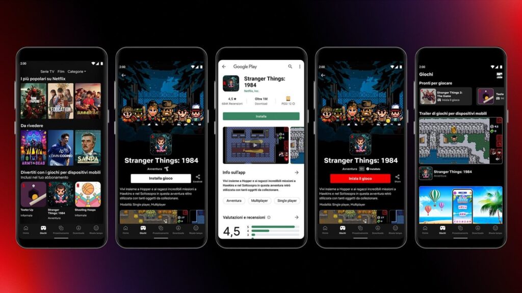 Desde esta semana al entrar en nuestra cuenta de Netflix podemos ver como a su catálogo se han sumado una pequeña oferta de videojuegos gratuitos, que los usuarios pueden descargar y jugar de forma gratuita. Un total de cinco videojuegos cuyos títulos son: Stranger Things: 1984, Stranger Things 3: The Game, Card Blast, Teeter Up y Shooting Hoops, todos utilizables en smartphones y tablets Android.